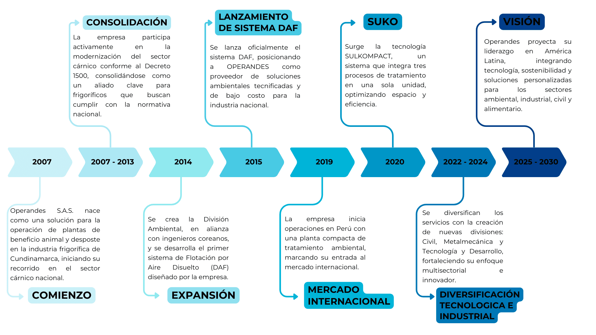 Ser la empresa líder en Latinoamérica en el desarrollo de soluciones integrales para la industria, el sector público y privado, reconocida por su capacidad técnica, innovación constante y resultados comprobables. Para 2030, nos proyectamos como una organización de clase mundial, con presencia consolidada en mercados internacionales, que transforma los desafíos de nuestros clientes en oportunidades de crecimiento, a través de la ingeniería avanzada, la automatización, la sostenibilidad y la adaptabilidad a las nuevas demandas globales. En OPERANDES SAS, la excelencia no es una meta, sino un estándar permanente.